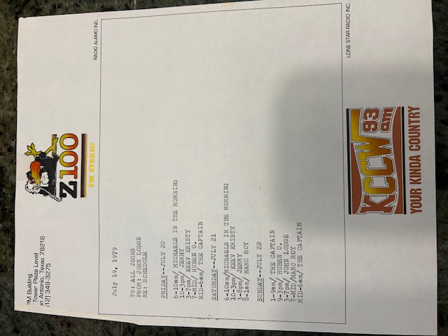 The KZZY on-air schedule before I arrived in September of 1979. (courtesy of Marc Roy)